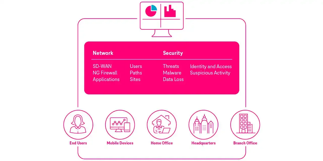 SASE stands for Secure Access Service Edge. While it was only given this name by Gartner in 2019, several SD-WAN specialists, including Deutsche Telekom, have been following a SASE framework for SD-WAN for several years. It is a method that essentially creates a single pane of glass through which you can view your network and security in the same place.